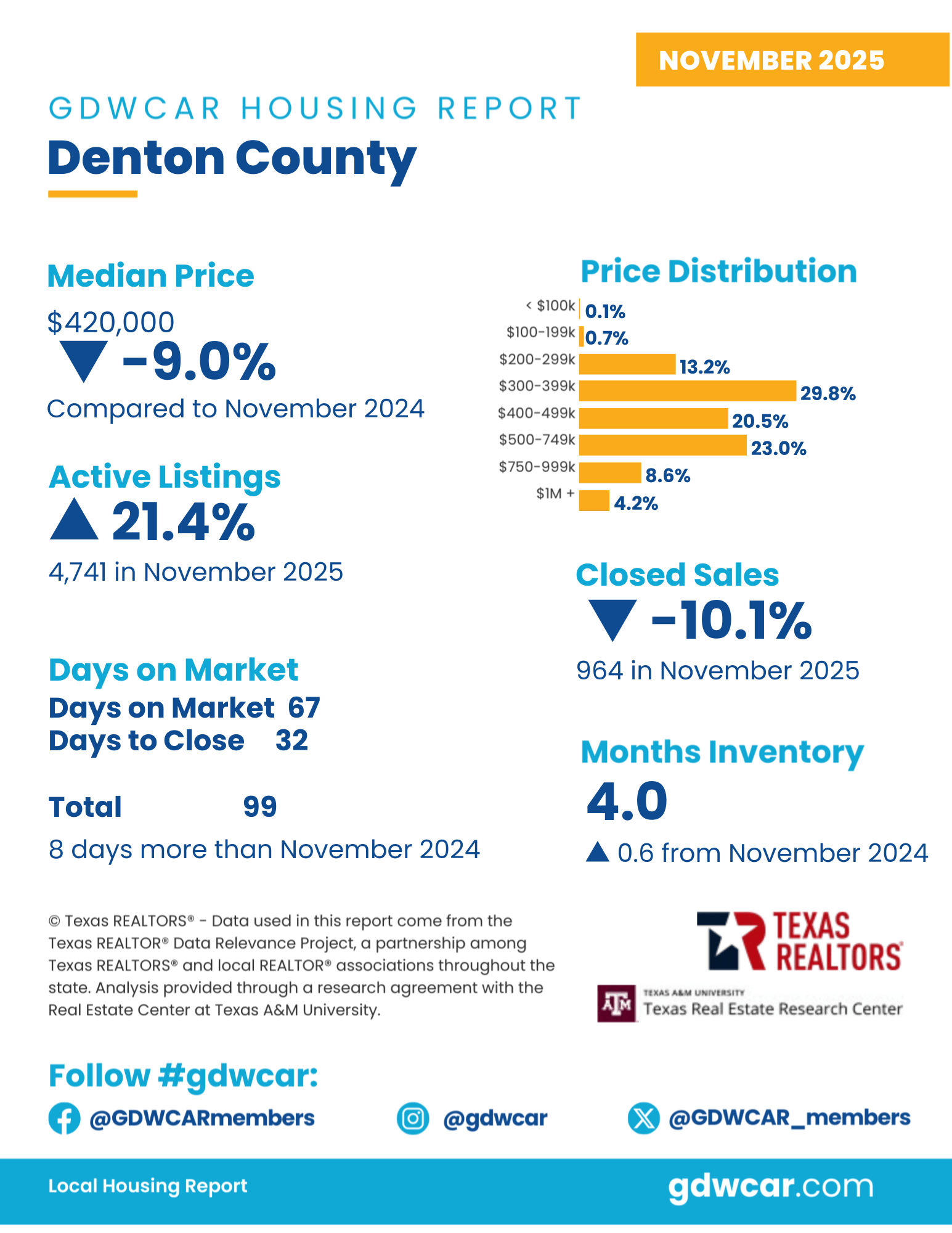 Here are the November 2025 North Texas Monthly Housing Reports sorted by Locally. Tap or click on the infographic to make it bigger.