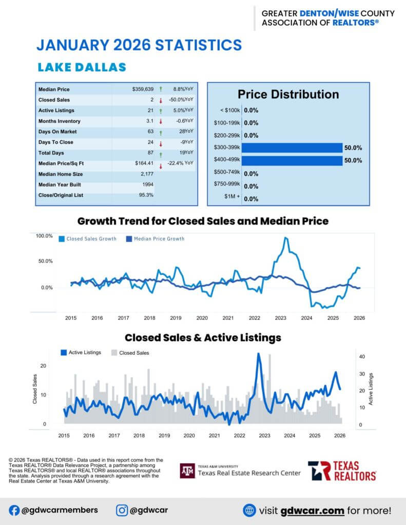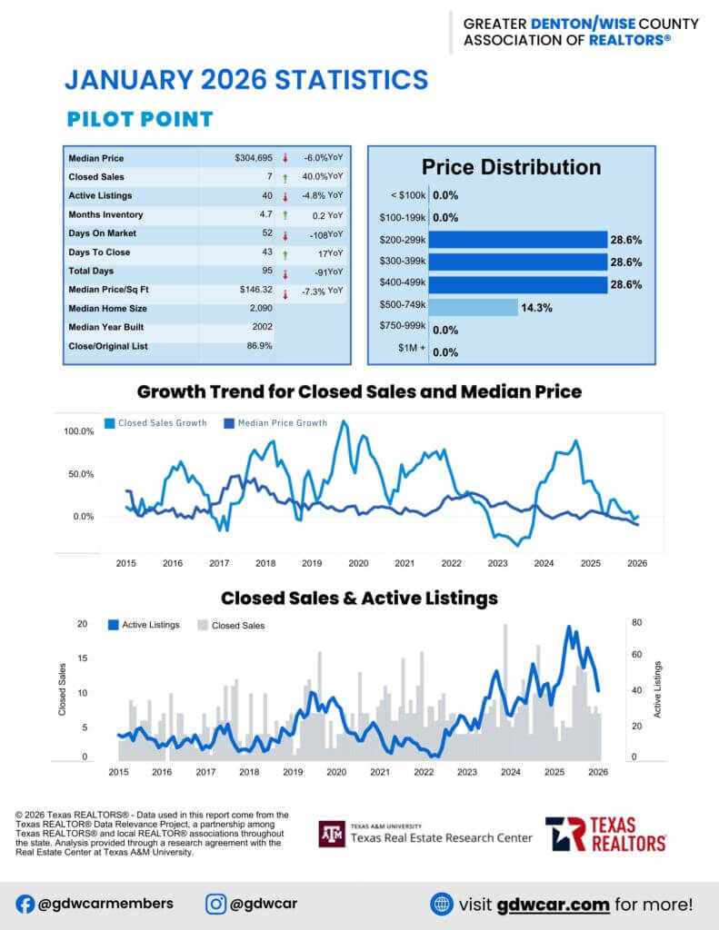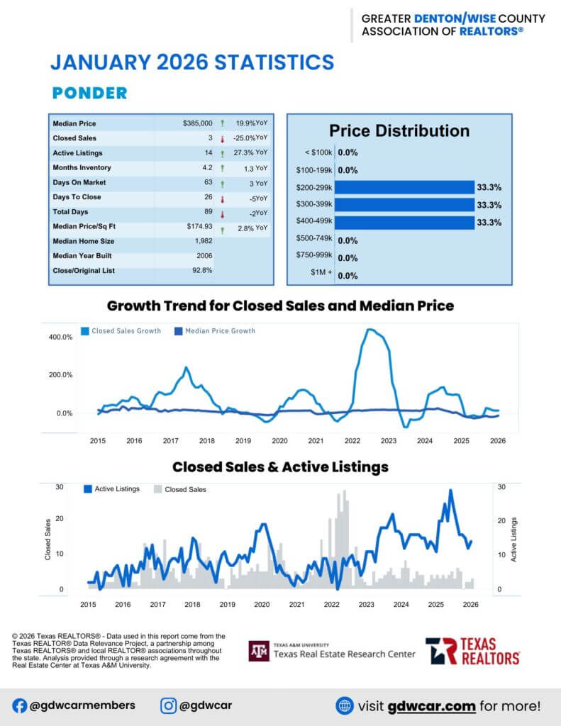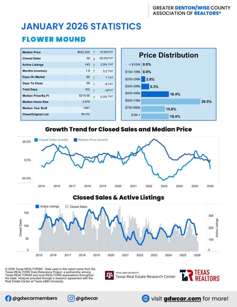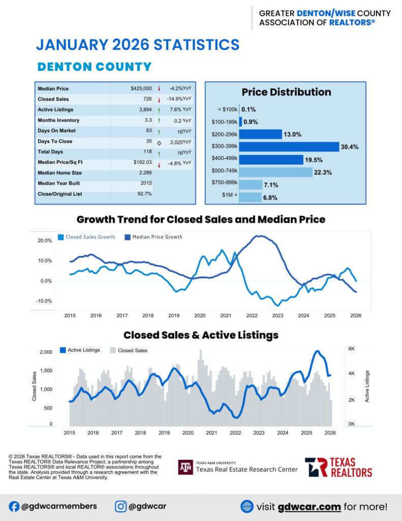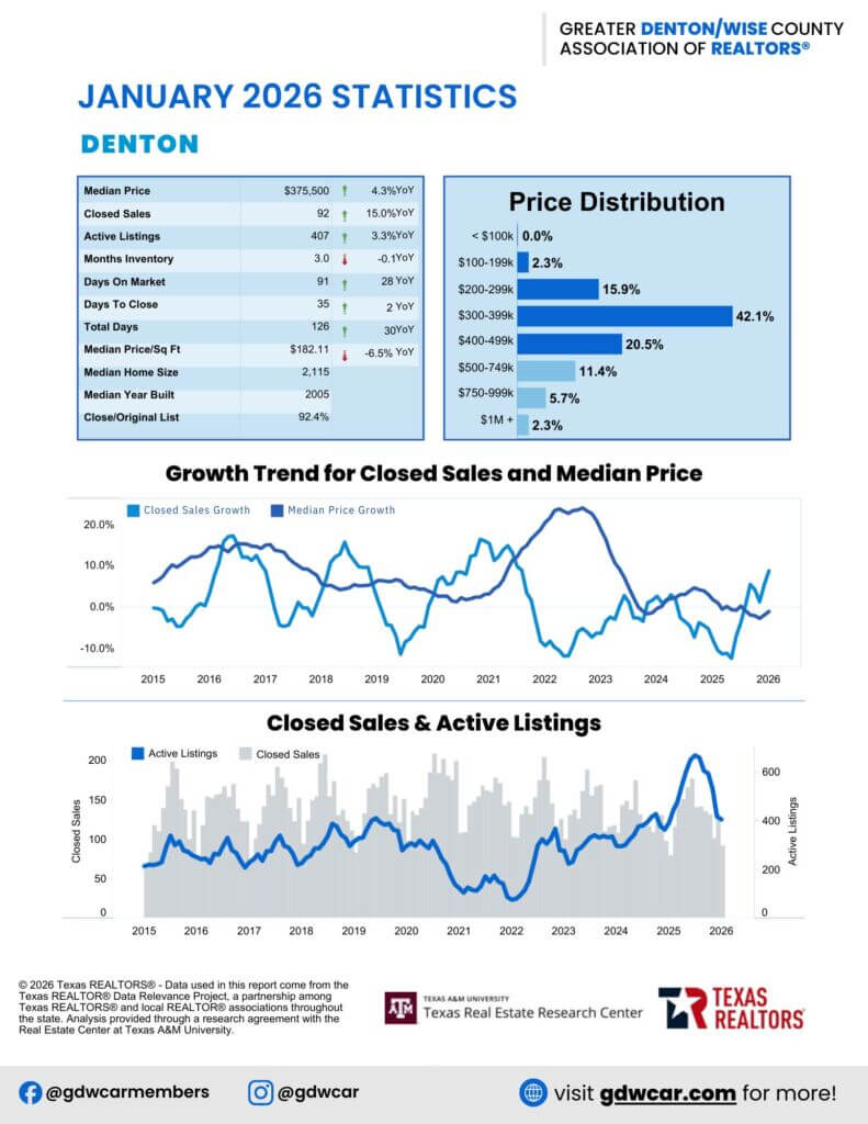 The February 2026 housing report reflects a more balanced and sustainable market. Sellers still have the advantage in several Denton County communities, but buyers are regaining leverage across the broader region. Whether you’re planning to buy or sell, today’s market offers opportunities—if you know where to look.