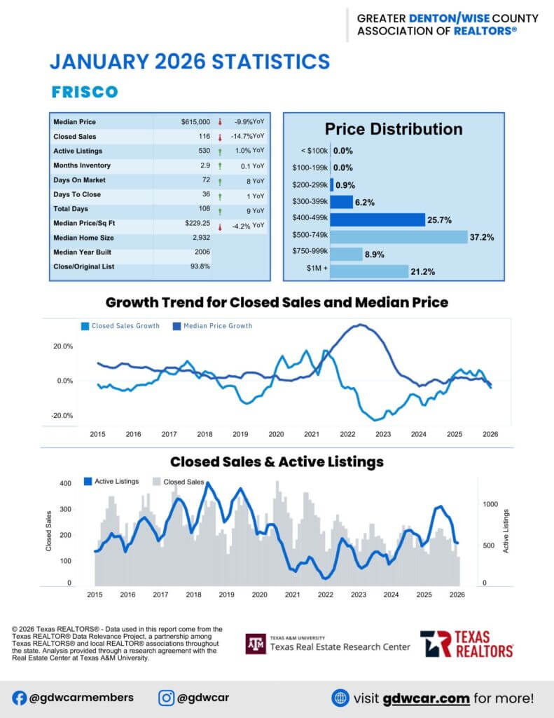 Here are the January 2026 North Texas Monthly Housing Reports sorted by Locally. Tap or click on the infographic to make it bigger.